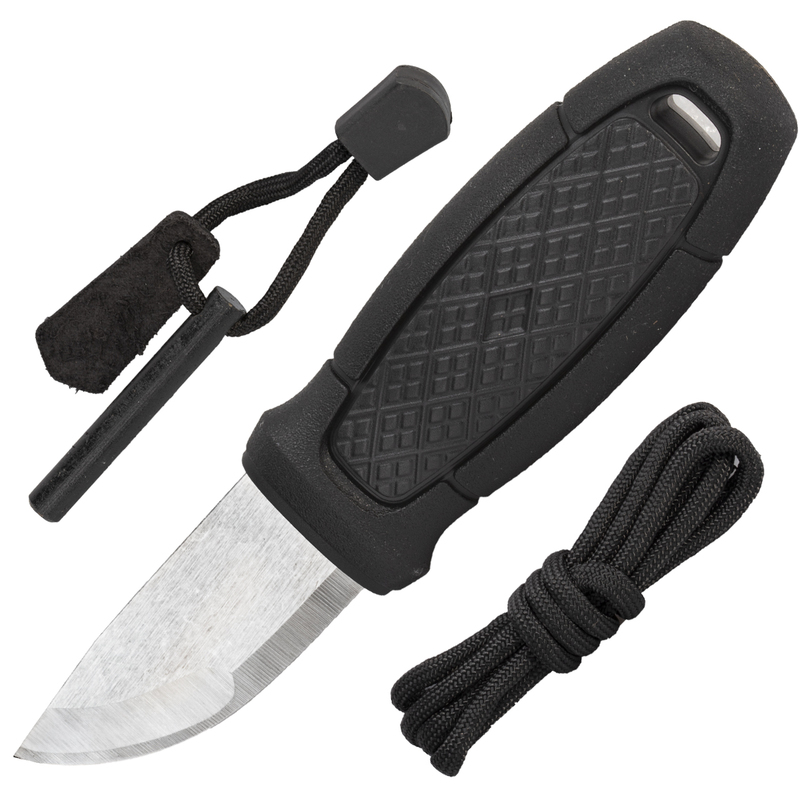 Excelentný vreckový švédsky nôž v čiernom prevedení s prekvapujúcou silou, odolnosťou a všestrannosťou ktorý je dodávaný spolu s kresadlom.