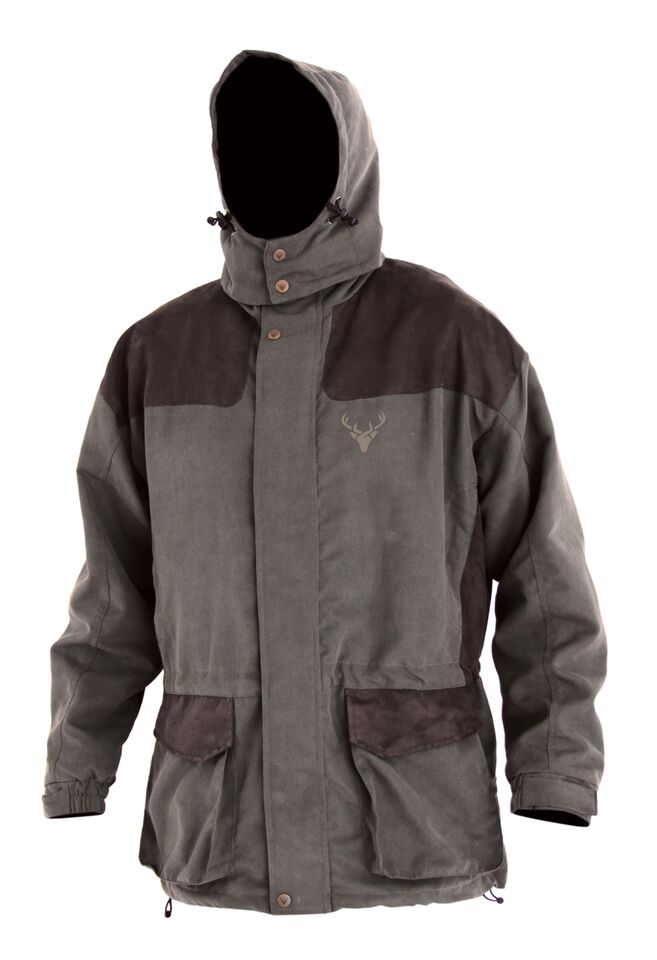 Odolný nešušťavý kabát s piatimi vreckami a kapucňou.