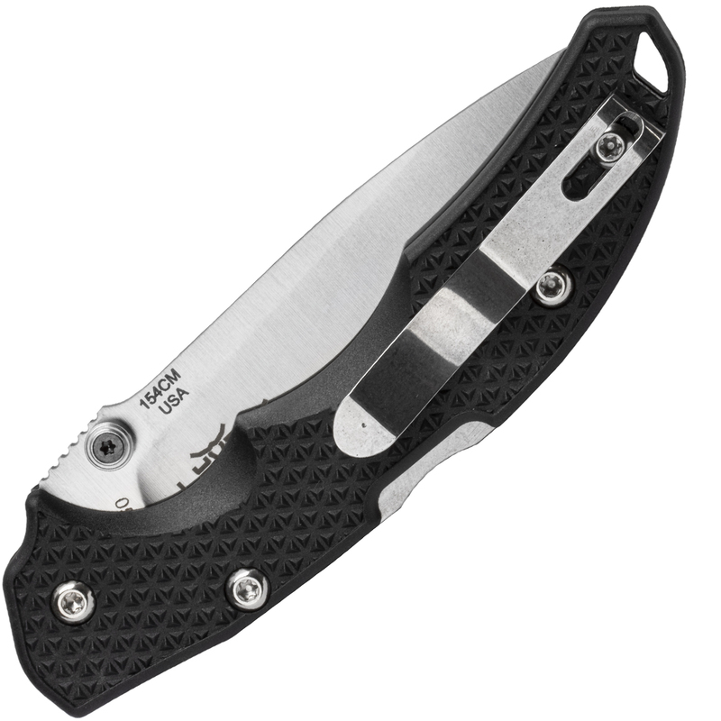 Čepeľ je vyrobená z ocele 154CM, ktorú zaisťuje poistka Backlock. Čierna ergonomická rukoväť s povrchovou úpravou je vyrobená z odolného plastu vystuženého sklenenými vláknami.