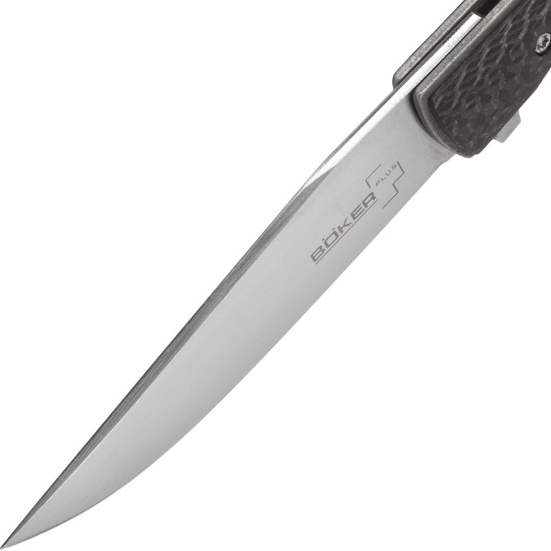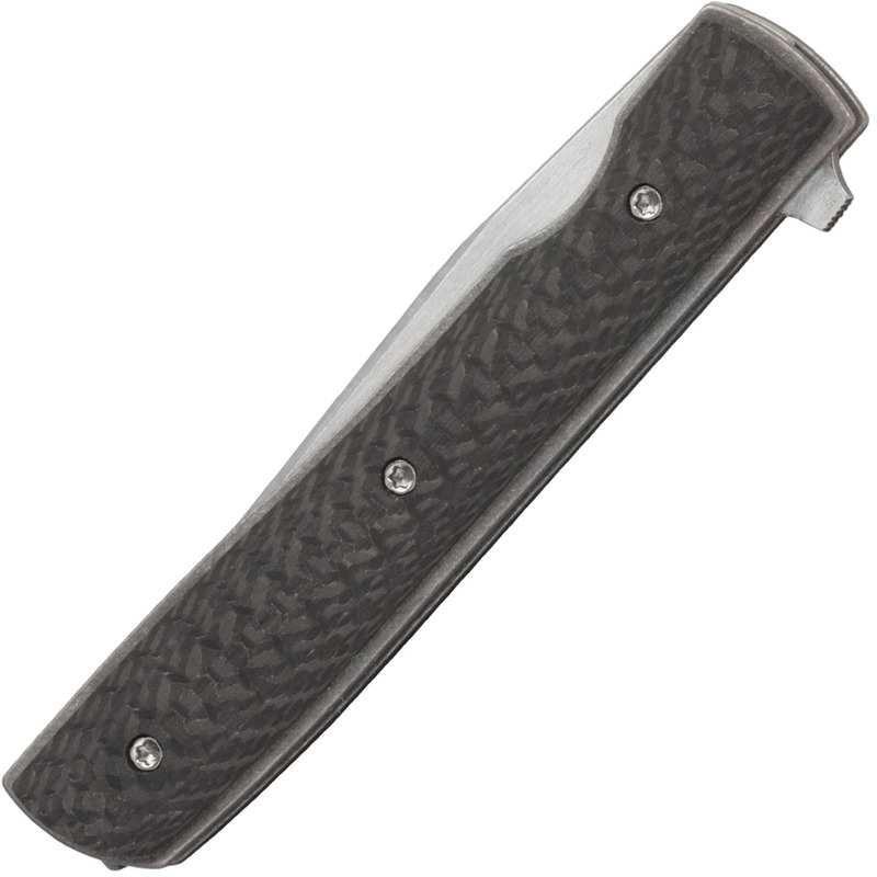 Čepeľ z japonskej ocele VG-10. Nerezová oceľ s vysokým obsahom uhlíku. Ta je samozrejme uložená na guľôčkových ložiskách pre hladké a rýchle otváranie. Rukoväť ma titánové vložky a črienky z uhlíkového vlákna.