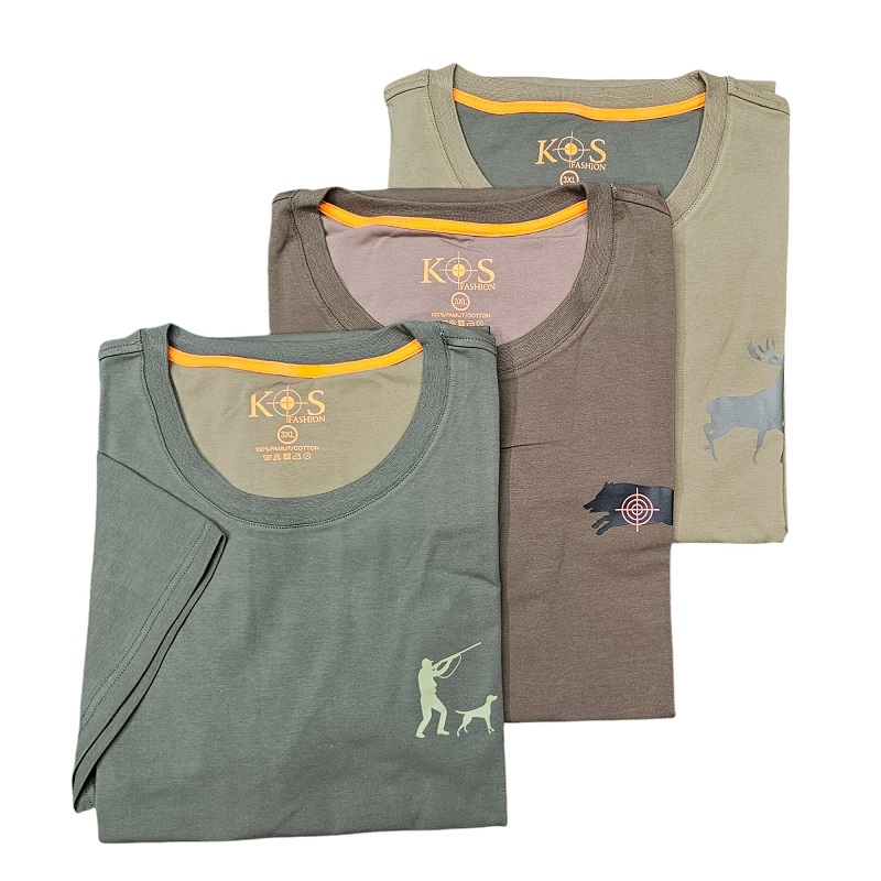 Sada 3 tričiek v rôznych farbách s motívom jeleňa, strelca a diviaka.