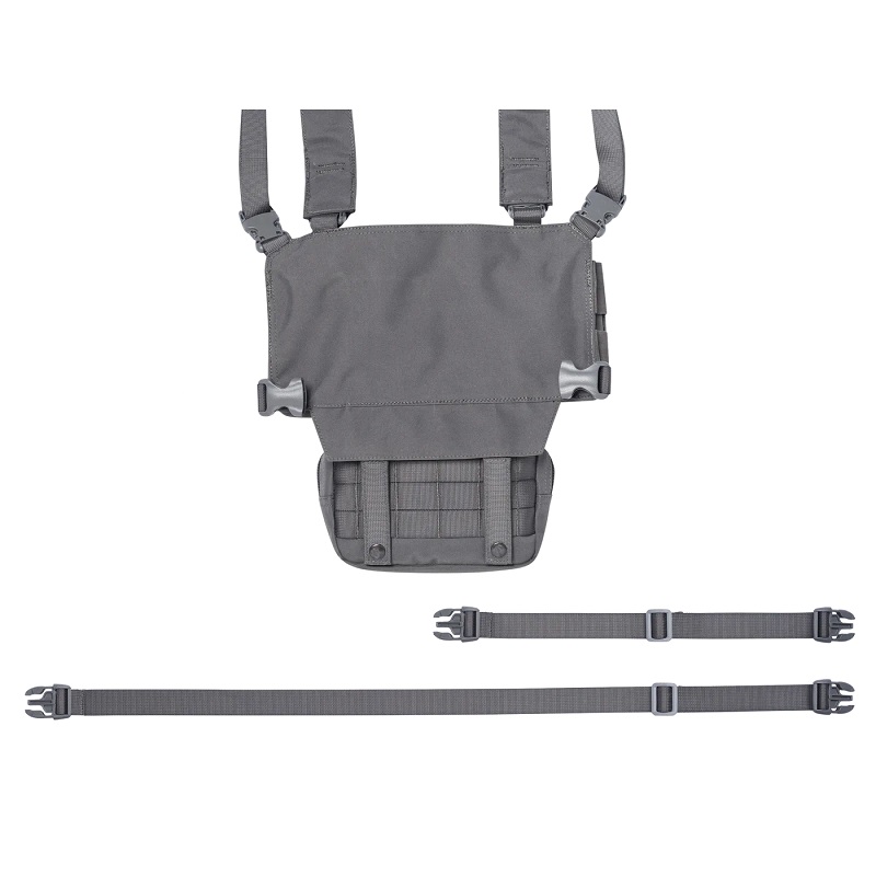 Tactical Chest Rig vyrobený z vysoko odolného ripstop materiálu. Do hrudnej súpravy sa zmestia až 4 zásobníky STANAG a 2 zásobníky pištole. Rozhranie MOLLE umožňuje používateľom prispôsobiť podľa svojich potrieb. Veľké viacúčelové vrecko umiestnené na prednej strane a odnímateľné vrecko na spodnej strane. Hrudník je vybavený dvoma nastaviteľnými upevňovacími popruhmi rôznych dĺžok, aby sa zabezpeč