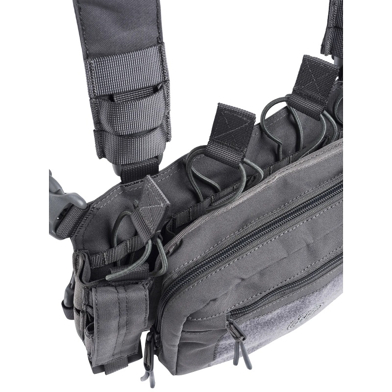 Tactical Chest Rig vyrobený z vysoko odolného ripstop materiálu. Do hrudnej súpravy sa zmestia až 4 zásobníky STANAG a 2 zásobníky pištole. Rozhranie MOLLE umožňuje používateľom prispôsobiť podľa svojich potrieb. Veľké viacúčelové vrecko umiestnené na prednej strane a odnímateľné vrecko na spodnej strane. Hrudník je vybavený dvoma nastaviteľnými upevňovacími popruhmi rôznych dĺžok, aby sa zabezpečilo optimálne uchytenie.