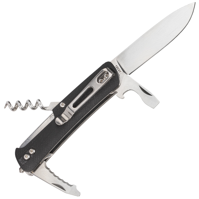 Na výrobu čepeli za zvolila oceľ Sandvik 12c27, ktorá je nerezová a špeciálne vyrobená pre nože. Spona sa nachádza na pravej strane. Na samotnom konci sa nachádza rozbíjač skla.